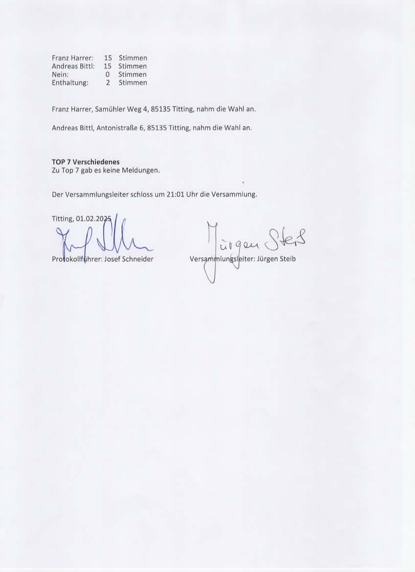 Einladung zur Jahreshauptversammlung 2026 Beitrags-Autor:admin Beitrag veröffentlicht:20. Dezember 2025 Beitrags-Kategorie:Sonstiges Allgemeine Veranstaltungsinformationen DATUM: Montag, 26. Januar 2026BEGINN: 19 Uhr ORT: SV Erkertshofen, Antonistr. 23, 85135 Titting-ErkertshofenEINGELADEN sind alle Mitglieder und Freunde der „DJK Limes 09 e.V.“ > Download Einladung Jahreshauptversammlung 2026 als PDF Protokoll der Jahreshauptversammlung 2025 Das könnte dir auch gefallen Mitgliederversammlung der DJK Limes 09 20. Februar 2025 Frankenschotter Soccer-Arena Einweihung und Trainerfortbildung 30. Juli 2024 Jahreshauptversammlung der DJK Limes 09 2024 28. Dezember 2023